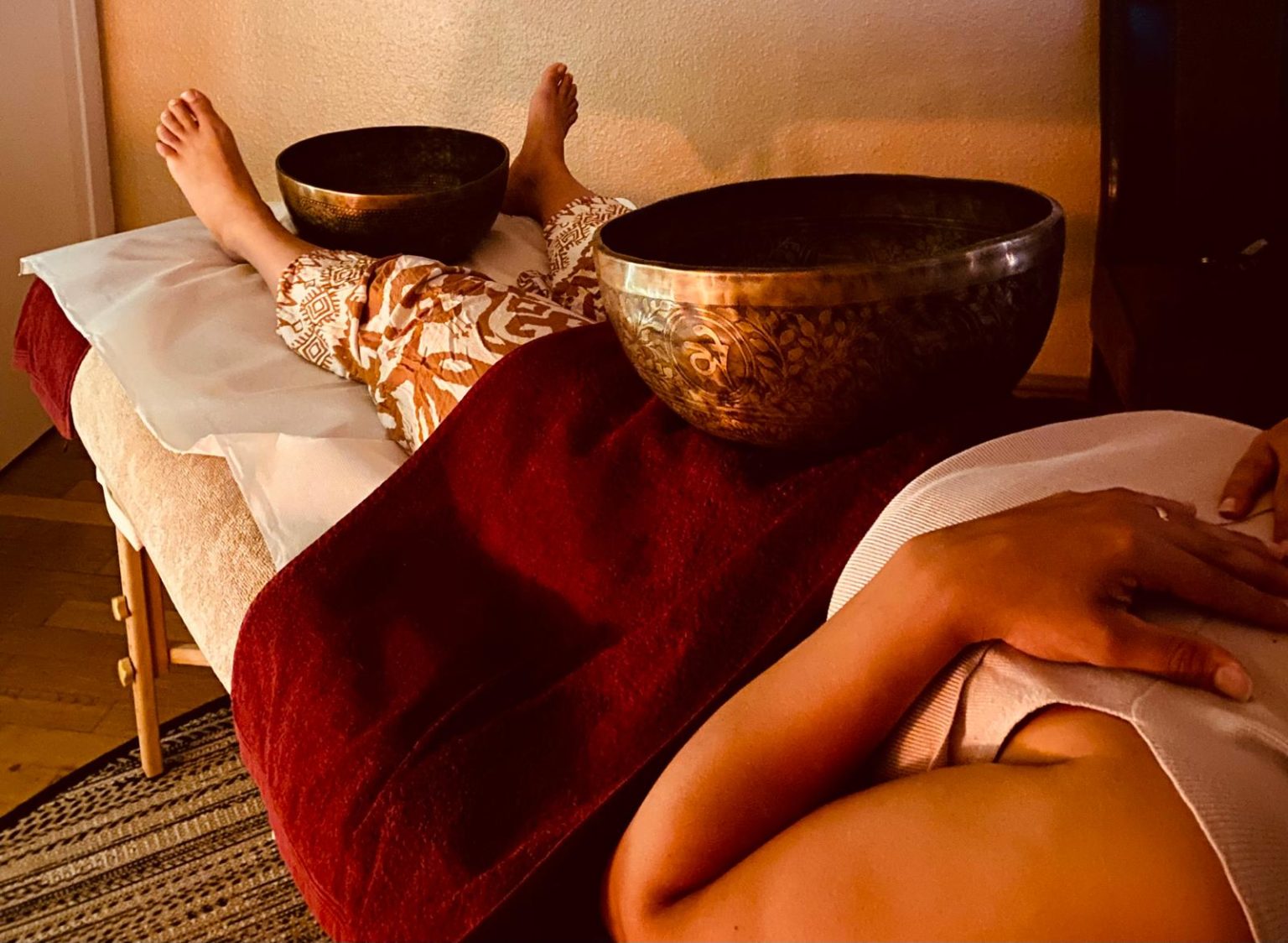 Soin Vibratoire aux bols Tibétains (les bols sont placés sur vous)